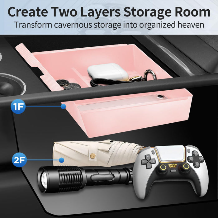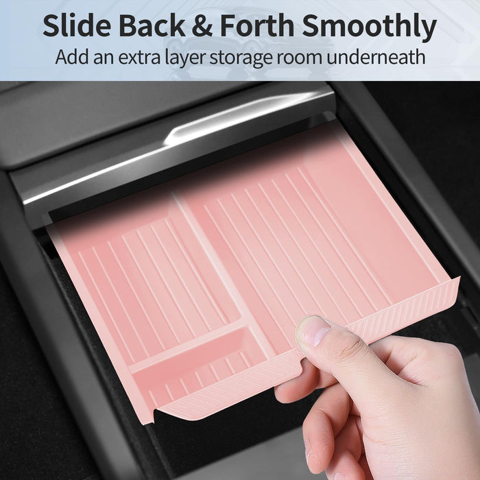 2024-2025 Tesla Model 3 Highland & 2025 Model Y Juniper Center Console Organizer Tray – Sliding Cup Holder with Pink Finish, Patented Interior Accessory