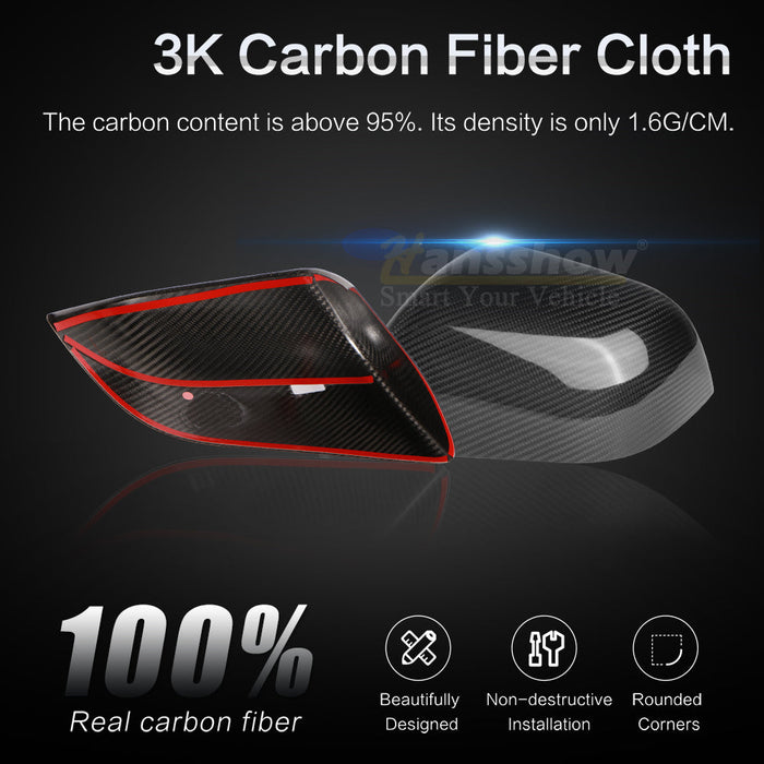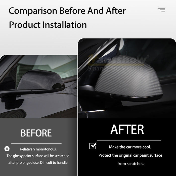 Transform your Tesla Model 3/Y Rearview Mirror to a sporty and aggressive style appearance with our GENUINE ultra-premium carbon fiber kit. With a new sense of style and aggression, your Tesla will look unique and distinguished on the road.