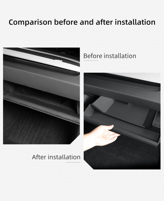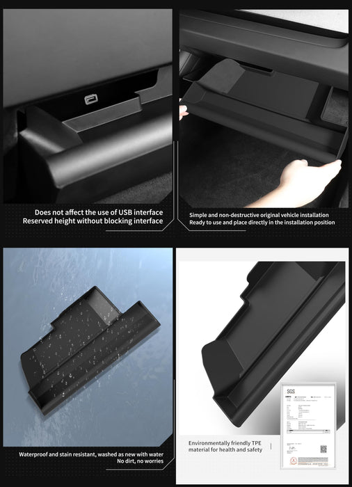 Precisely engineered for the Tesla Model 3 Highland 2024 and 2025. Please confirm your vehicle model and year before purchasing. Functions as a retractable drawer—simply pull out to use and push back into the glove box when not needed.Maintains USB Port Accessibility