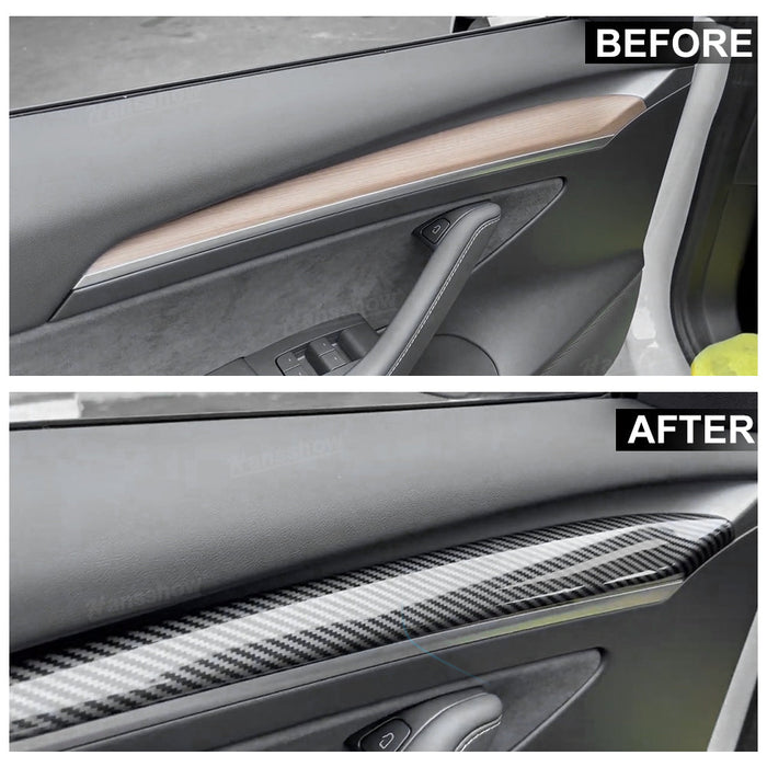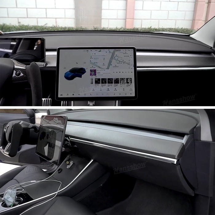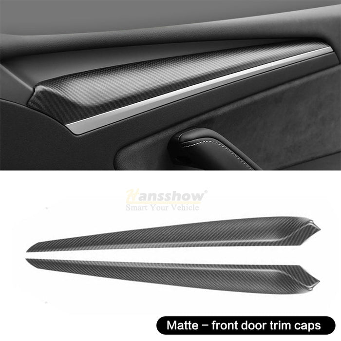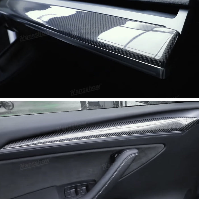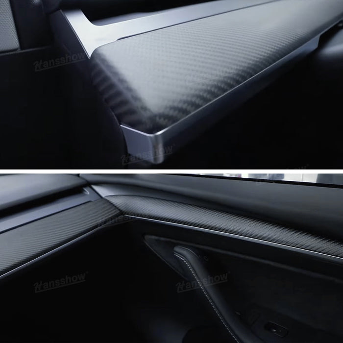 - šćTesla Dashboard + Front Door Cover WrapćTesla Model 3/Y dashboard and front door trim cover can perfectly match the original design seamlessly. it is suitable for both 2018-2022 Model 3 and 2020-2022 Model Y, if you are a fan of carbon fiber trim, you just need to buy it.