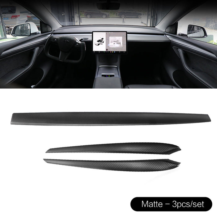 Real Carbon Fiber Dashboard Cover Front Door Trim Panel Caps for Model 3/Y