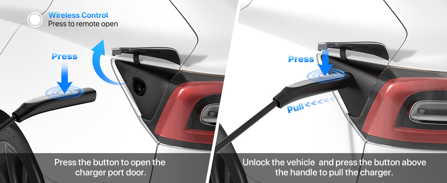 Adjustable Amperage: Effortlessly manage your charging settings with the sleek touch switch, enabling you to adjust the current between 15A and 40A for optimal convenience and energy savings. Additionally, the wireless charging port opening feature streamlines the charging process for Tesla vehicles, making it even simpler to connect and charge.