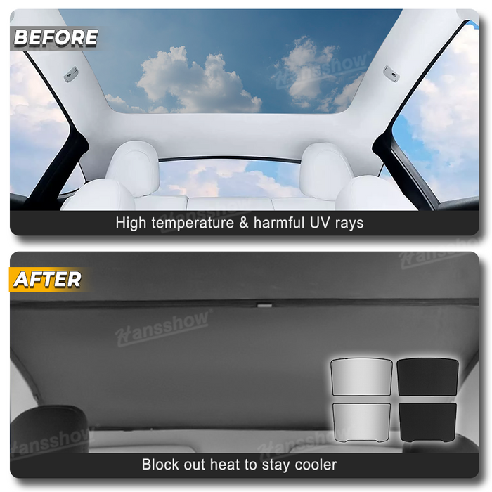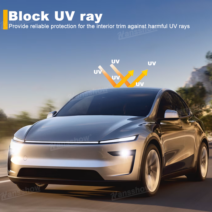 【Compatibility】Suitable For Tesla Model Y Juniper 2025.03+Key Features:【Perfect Fit】Specially designed for Tesla Model Y 2025.03+, Roof sunshade fits the original car glass roof precisely. The sun shade 100% matches the Model Y Juniper glass roof, with no gaps or sagging.【Premium Material】Made from high-quality ice crystal fabric, the sunshade has good thermal insulation and heat dissipation effect to keep the interior cooler and more comfortable.【Sun Protection】 The glass roof sun shade provides reliable protection against harmful UV rays and excessive heat, making driving more comfortable by blocking out heat.【Interior Protection】The sun visor can protect the seats and interior from fading and cracking due to sun exposure.【Easy Fold & Store】The glass roof sunshade is easy to fold and store. When not in use, simply fold it into the provided storage bag. Package Includes:1 pcs/set roof sun shade